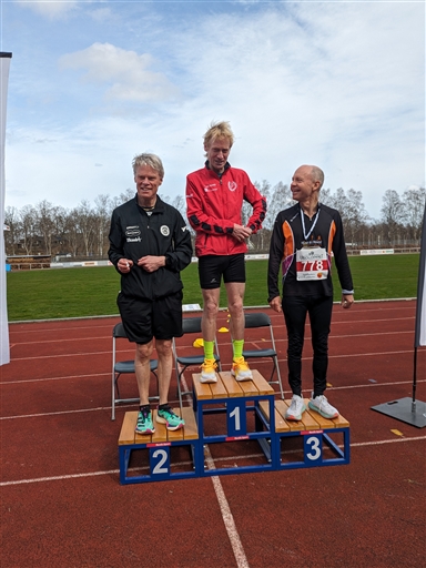 Jag får nog vara nöjd efter omständigheterna, för det här var en riktigt tuff bana med den ena backen efter den andra. Det var svårt att få något som helst flyt i löpningen. Förstod tidigt att jag inte skulle få till någon bra tid, fokus blev i stället på att ta medalj i M60. Efter första varvet gick många löpare i mål (på milloppet), kvar blev en gubbe ca 100m framför mig och han såg ut att kunna vara i min ålder. Jag segade mig närmare och närmare och efter 12 km var jag ifatt. Tog hans rygg ett tag, men kände snart att det var läge att dra förbi. Lade in rycket i en utförsbacke och det lyckades. Sedan var det "bara" att försöka hålla stilen. Andra varvet bjöd på ännu fler jobbiga backar i och med att vändpunkten flyttats 500m längre bort. Sololöpning hela vägen, jag försökte spara mig när det gick uppför och lyckades väl hålla ihop löpningen någorlunda. Och det visade sig efter målgång att den andre gubben faktiskt sprang i M60 och att jag således hade krigat mig till en silvermedalj! Dessutom 15 plats av 38 herrar.