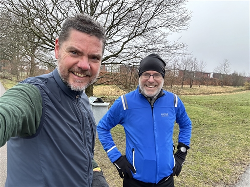 Några grader kallare än den senaste veckan. Men det var bättre löparväder. Efter att ha varit vaken 33 h sedan igår morse så behövde jag hjälp att hålla mig vaken. @hakanklippenbock ställde upp och höll koll på mig så jag inte sprang och somnade. Väldigt skönt att få skaka loss benen efter att ha suttit på tre olika flyg på vägen hem. Dessutom är det ju fredag så jag fick skaka fram en vits helt ospontant 🤪