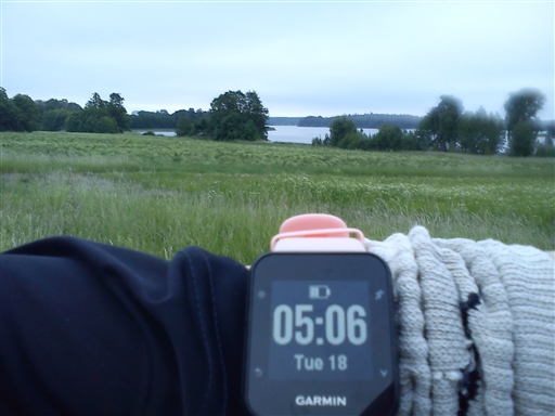 Ut I grå morgon, 13 grader o vara en lätt vind. Genom byn o ner mot sjön. Upp o genom hagarna, korna vakna men stog lugnt o åt sin frukost. Ut på andra sidan, grusvägen mötte vanliga bilarna. Vid kurvan Noor, flög en häger upp från det lilla vattendraget, så stort o mäktigt.