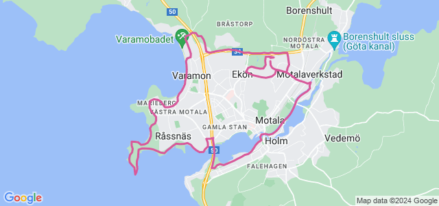Motala - Bergsätter - Kanalen - Motalabron - Råssnäs - Varamon - Metallvägen - Bergsätter