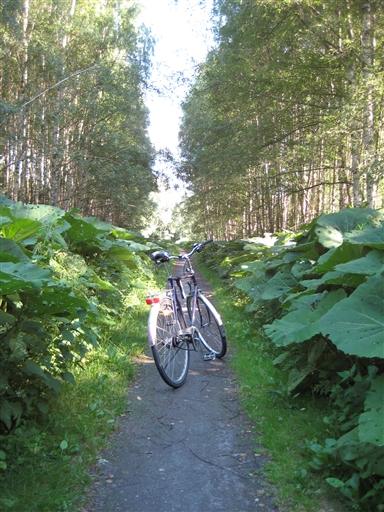 Total cykling under em, uppdelat på två pass. Det första på ca. 45 minuter, det andra resten av tiden. Under första delen cyklade jag till badplatsen vid S. Björnön, vände där och cyklade tillbaka till badet vid Björnöhalsen, där jag parkerade cykeln och gick en runda. Andra delen av cyklingen cyklade jag vidare till småbåtshamnen strax S. om Gäddeholms slott, vände där och cyklade sen tillbaka hem via Hässlö gård, Fågelvik etc.