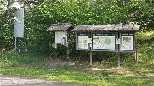 Parkerade vid parkeringen strax S. om bron över till Ängsön. Det gick bra att låsa fast cykeln i stolpen till en informationstavla.