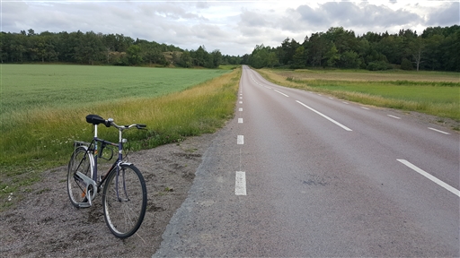 3 min stopp vid vändpunkten, ca. 1,1 km S. om infarten t. Högsholm. Sträckte på benen, drack lite vatten och tog ett foto (bild nedan). Sen skön medvind hem.