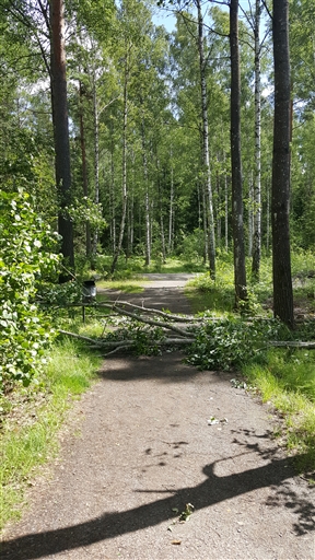 Har visst varit lite blåsigt de senaste dagarna. Ett omkullblåst träd över stigen just innan man kommer in på motionsspåret.
