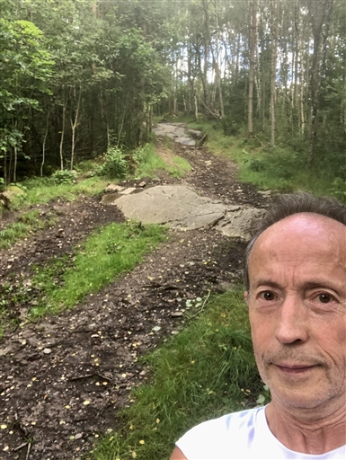 Bilden är bara en kort -knapp 100m- sträcka nedför, bilden är bakåt. För övrigt det mesta är typ 4km elljusspår. Banan 6,7km har 140 höjdmeter.