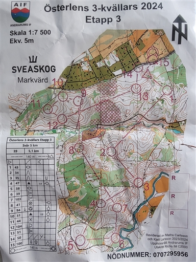Öppen klass "Svår 5 km". 5120 m. Tid 60.07. Lade bort max 3 minuter tot.