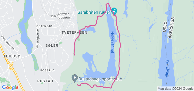 Med Tone. Gikk fra Haraløkka, men satte ikke på klokka før på Rustadsaga. Fint i skogen i dag.