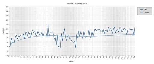 Siktade på en 1,5-timmesrunda på ca. 108 bpm i snittpuls. Det regnade ute och jag var inte så sugen på att sticka ut, men jag behövde den här rundan för att få in dagens cykelkvot, samt för att få lite cirkúlation i benen efter gårdagens pass.