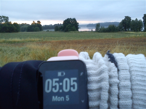Efter en tidig jobbhelg, var det en skön känsla att vakna o vara ledig! Ut I grå men frisk luft, genom byn o ner mot sjön, upp o genom hagarna. Blev så överraskad, mötte en raskt cyklande man på lilla traktirvägen, iklädd kontorskläder med portföljen på pakethållaren, kl 05:10.. Han hejjade glatt o undrade säkert vad jag var för galning som var uppe så tidigt. Såg alla korna som redan klivit upp. Blött o många sniglar. Ut på andra sidan, grusvägen mötte vanliga bilarna o hem. 🌿🌸🙂