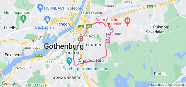 Ullevi-Delsjövägen- Kålltorp-Ättehögsgatan-Munkebäck