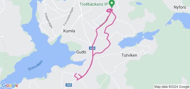 Sprang till Trollbäckens IP och Freds friidrottsträning när Fred cyklade. Sen sprang jag ett gäng varv på IP, snabbt när det fanns utrymme och långsammare ibland. Sen hem igen med Fred på cykel.