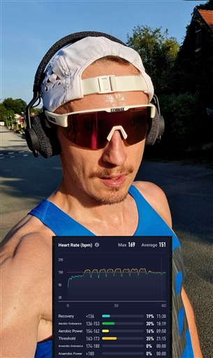 8×1k / 1’v. Betydligt svettigare pass än imorse, men bra kontroll passet igenom.