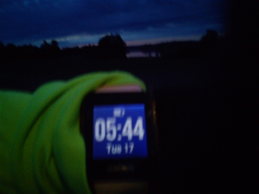 Ut I mörk morgon, 8 grader o vindstilla. Genom byn o ner mot sjön. Upp o genom hagarna, såg korna på samma plats som igår. Ut på andra sidan. Grusvägen, vanliga bilarna o hemåt.