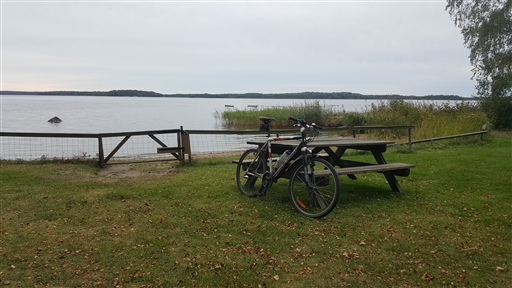 Jag cyklade först till badplatsen vid Vretbo - via Talltorp-Hamre-GC-banan Fågelvik-Björnöbron-Hässlö gård-Gäddeholm-Rosendal och Harkie. Efter ett kort stopp för foto och vatten cyklade jag tillbaka samma väg till Björnöbron där jag cyklade ut på Björnön och ned till Björnöborg. Det blev en kort paus för foto och vatten där också, sen tillbaka hem via Fågelvik etc. samma väg som jag kört tidigare.