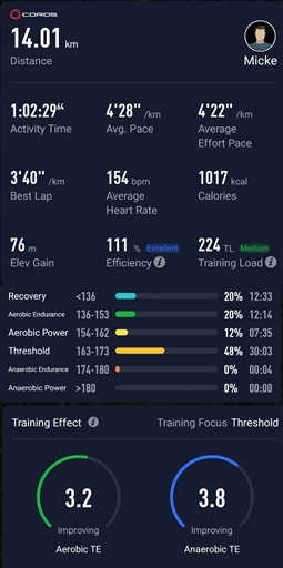 typ, distans, tid och snittfart. Stjärnmedlemmar kan kopiera samtliga fält och diagram.