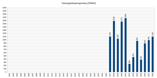 Summering: Det känns som en bra vecka. Jag klarade av det jag föresatt mig, samt lite till. Dock har jag känt att energin har varit lite väl låg vid sidan av passen. Har inte fått så mycket gjort vid sidan av träningen. Får fundera på om jag ska ta och backa ned temporärt under kommande vecka, innan jag ev. ökar igen. Kanske 1000 TRIMP kunde vara en rimlig nivå att testa kommande vecka.
