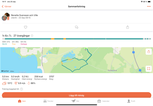 typ, distans, tid och snittfart. Stjärnmedlemmar kan kopiera samtliga fält och diagram.