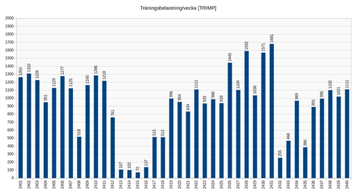 Jag gissar att, med den mixen av pass som jag kör med nu, jag nu ligger i närheten av vad jag är mottaglig för v.g. belastning. Kanske ligger gränsen någonstans vid 1050 TRIMP/vecka.