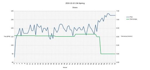 Regnet började först efter ca. 35 min. löpning, eller knappt 6k. Men det var rätt lätt duggregn, så det bekom mig inte särskilt mycket. Det var iaf. skönt att starta passet medan det var uppehåll.