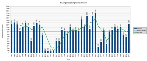 Det blev en relativt tung vecka, men jag lyckades iaf. jobba upp belastningssnittet (4 v.) lite. Åtminstone på rätt sida om årsmedelvärdet nu. Det märktes främst på långpasset igår att jag inte var tillräckligt utvilad, så kommande vecka blir det till att släppa upp lite på belastningen jämfört med veckan som varit.