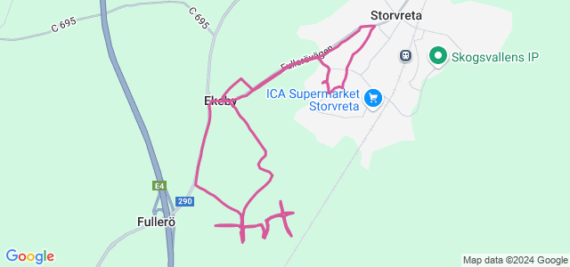 En sväng i byn och en sväng i Fullerö Hage. Den senare innehöll en bit jungfrulig mark (på kartan rakt ut i skogen vid 8 km, men i verkligheten en bred nyligen färdig och asfalterad väg. Regnet kom men var väntat och förberett, så det störde inte.