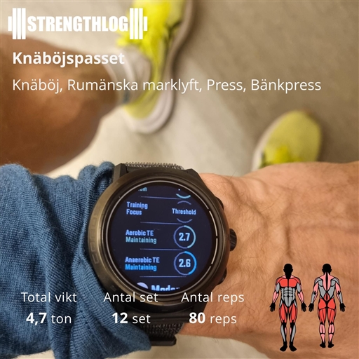Knäböj: 1x10 @60kg, 1x6 @80kg, 2x4 @100kg