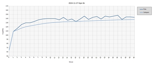 Kan nog bli tufft att försöka få till 140 BPM i snitt under ett kommande pass, men det kan vara kul att testa. Klockans algoritm indikerade 136 BPM i snitt under passet, men om jag ser till minutvärdena för pulskurvan så får jag fram ett snitt på 138 BPM. Jag vet inte riktigt hur klockan räknar, men jag får väl lita mer på dess snitt än det jag får från minutvärdena i det här fallet.