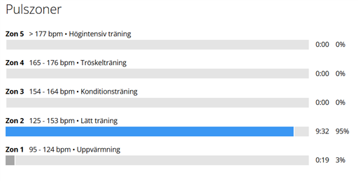 Medelpuls 145, max 153. Borg 11. Bör inte kunna bli så högt laktat (2,4)!