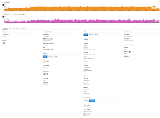 typ, distans, tid och snittfart. Stjärnmedlemmar kan kopiera samtliga fält och diagram.