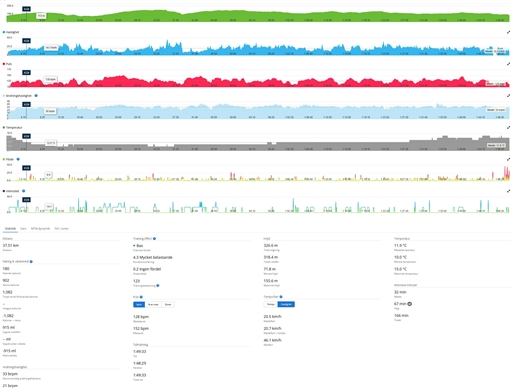 typ, distans, tid och snittfart. Stjärnmedlemmar kan kopiera samtliga fält och diagram.