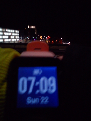 Ut I mörk morgon, all snö som kom igår hade förvandlats till is-vatten.. Vanliga varvet runt byn, trottoarerna nästan fria från is, men på vägarna förrädiskt halt under vattnet..