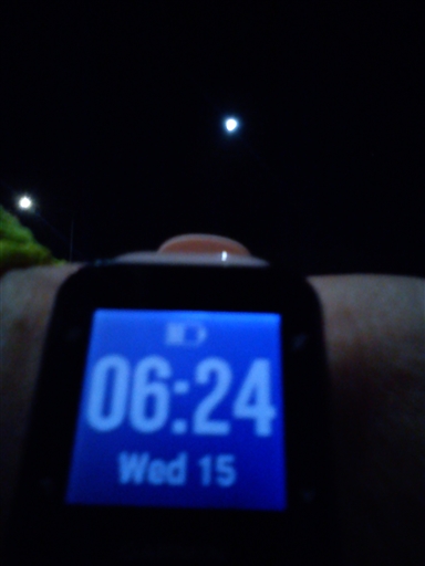 Ut I mörk morgon, straxt under noll grader o vindstilla. Genom byn o ner mot sjön, fruset på marken ok på trottoarerna men fläckvis isigt. Månen spred sitt fina sken 🙂 upp o genom hagarna tog det lugnt o gick på vissa ställen för säkerhets skull. Ut på andra sidan, grusvägen o hemåt.