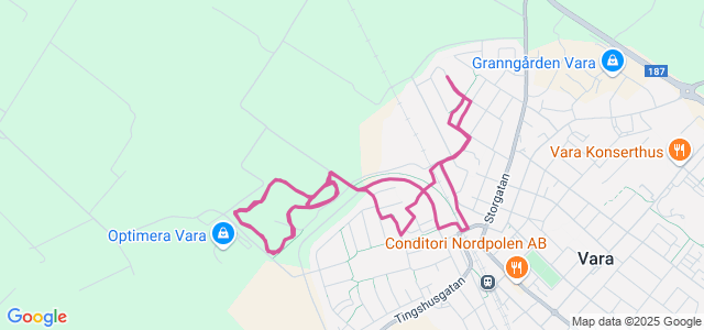 En helt vanlig torsdagrsunda med min Brevlådekompis som draghjälp. Strax över nollan, lite is-regn i luften och lite vind när vi lufsade iväg, nederbörden kom dock mest som små is-piggar så man blev knappt blöt. Lustig effekt var att på Skogskullespåret la det sig som snö så där lite halt på sina ställen... Tåget kom när vi startade så en liten omväg fick det bli men blev ju lagom distans till slut.