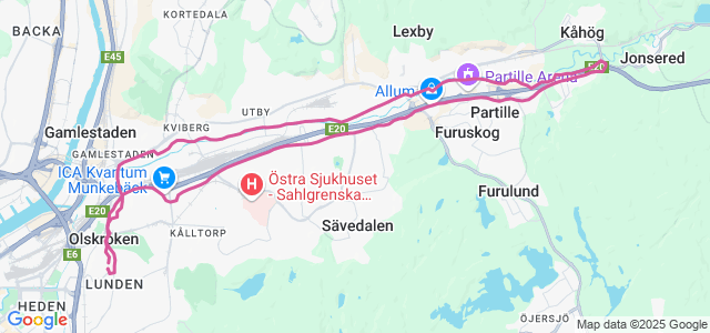 Kände knät lite i nedförsbacken precis i starten, annars gick det bra. Lite halt bitvis men ingen vurpa. Energi hela vägen.