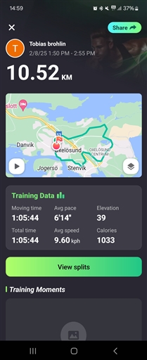 typ, distans, tid och snittfart. Stjärnmedlemmar kan kopiera samtliga fält och diagram.
