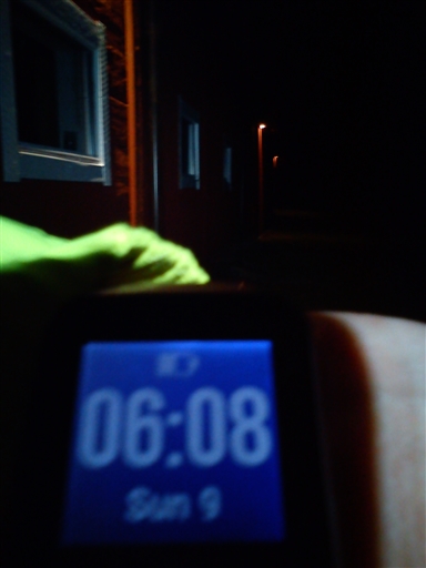 Ut I tidig morgon, -0,5 grader o helt vindstilla. Genom byn o ner mot sjön. Där såg jag i pannlampans sken att det föll små lätta flingor från himlen. Upp o genom hagarna, såg reflexerna från en hares ögon i nedersta kohagen. Ljuset från ladan i Eggebyholm mötte mig vid andra sidan. Grusvägen, hård o lättsprungen. Mötte tre bilar, undrar om det var jägare? På Segerstavägen mötte jag grannen Christer, när jag kom hem.