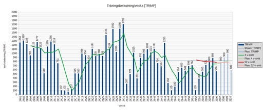 Efter att ha diskuterat med coachen (AI-tjänsten Perplexity) har vi kommit fram till en lite lägre progression för den kommande fyraveckorscykeln (se diagram), än vad jag tidigare tänkt. Den tidigare planen (se gårdagens summering av veckan) var kanske lite i överkant.