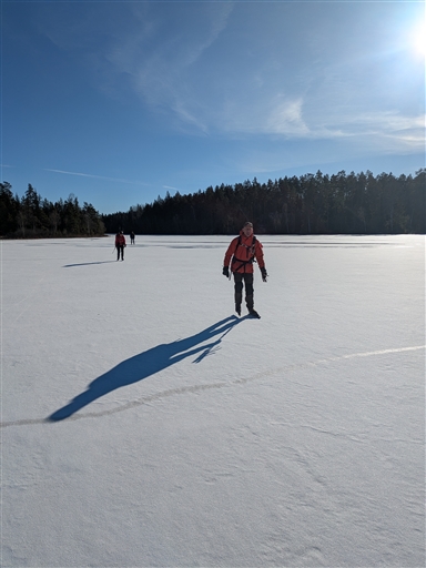 Två fina sjöar, två besvärliga skogspromenader, två goda fikor, åtta personer.