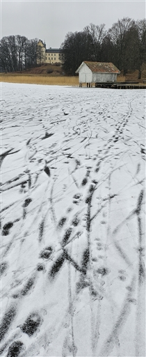Äntligen blidväder och det tunna snölagret smälter. Snöfläckarna oftast rundningsbara. Väl bärigt, tunnare runt västra Luraholme, söder om holmen mot fastlandet skravel och lite mjukt.
