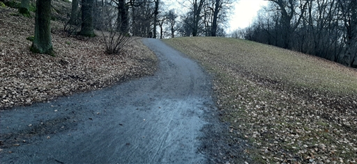 Korta backintervaller i Karlbergs slottspark. Lite lerigt, men skönt att slippa asfalt. 16 gånger sprang jag uppför den lilla backen (3*5 plus en extra när jag skulle fortsätta på spåret).