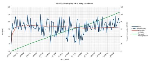 Snittpuls för stavgång + styrketrän: 92 BPM