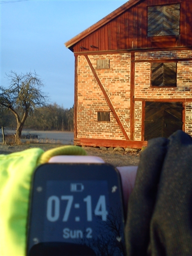 Ut något tidigare än igår, -1 grader o mycket klarare. Genom byn o ner mot sjön där ljuset kommit. Lämnade Silva hemma, då det var helt ljust igår. Upp o genom hagarna, såg 4 rådjur I nedre hagen. Ut på andra sidan, solen trängde fram precis vid den fina ladan vid Leding. Hemåt o nu kika på Vasaloppet på TV.