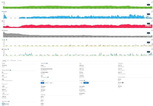 typ, distans, tid och snittfart. Stjärnmedlemmar kan kopiera samtliga fält och diagram.