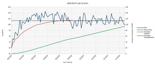 Dagens mål var att få ihop ca. 80 TRIMP på låg intensitet under 90 min. Jag siktade på en puls på 106 BPM, vilket innebär rel. låg A1, men inte absolut min. Jag hade kunnat kört på min (ca. 99 BPM), men jag ville hålla passet till ca. 90 min.