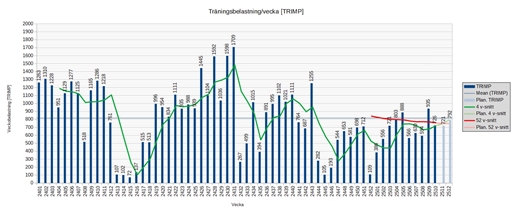 Det gick ju ok även denna veckan, även om jag känt mig lite väl trött stora delar av veckan och haft en del krångel med magen. Indikationer på att jag legat för högt i total träningsbelastning och/eller att energiintaget varit för lågt i föhållande till träningsbelastningen. Detta trots mycket lägre belastning än föregående vecka och att jag dragit ned rejält på energiunderskotten under veckan.