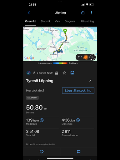 typ, distans, tid och snittfart. Stjärnmedlemmar kan kopiera samtliga fält och diagram.