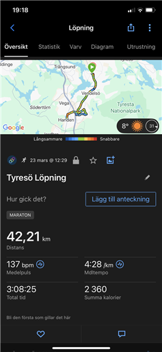 typ, distans, tid och snittfart. Stjärnmedlemmar kan kopiera samtliga fält och diagram.