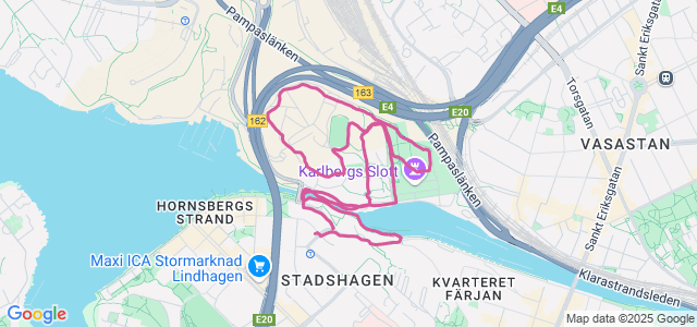 Kort och lätt, kors och tvärs i Karlbergs slottspark. Test av hur knäna mår efter vurpan i torsdags. Och lite ömt är det, men nästan helt bra.