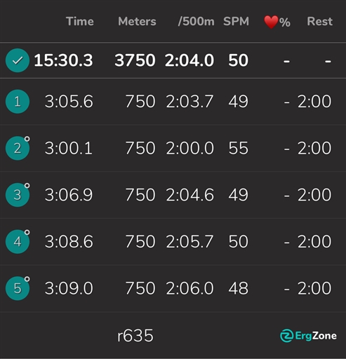 Stakmaskin - 33 min. Uppvärmning och intervaller (se bild).