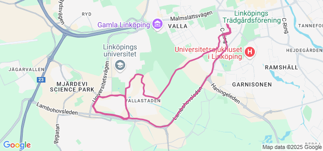 Skippade de vanliga måndagsintervallerna eftersom jag ville köra lite "skotest" på asfalt, så körde utmed Lambohovsleden samt FOI-slingan. Stötte på Mikael Kahlström (var ett tag sedan) som också körde en egen variant så vi växlade några ord efteråt och joggade ned lite.